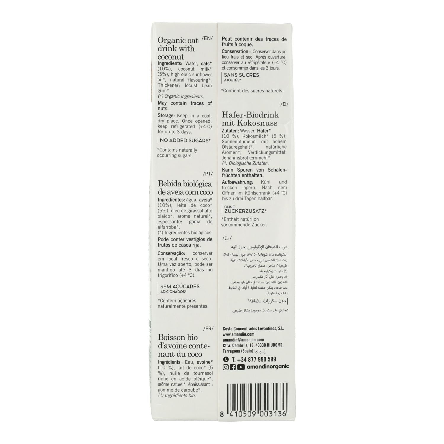 Alle Informationen über "Hafergetränk mit Kokosnuss Amandín 1 l"