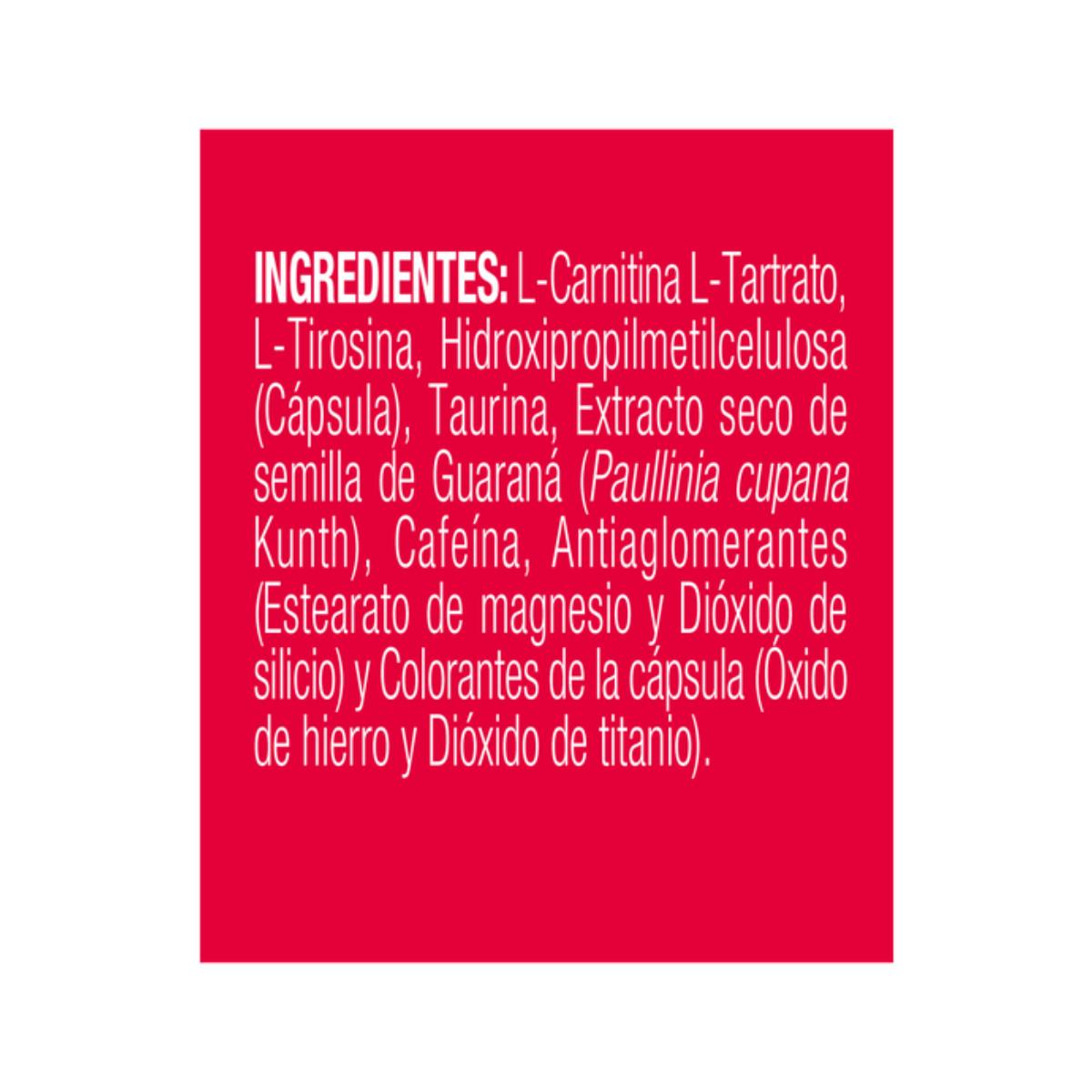 Demineralisiertes Wasser, Fruktose, L-Carnitin, Guarana-Trockenextrakt ( Paullinia cupana , Samen), L-Tyrosin (Aminosäure), Taurin, Säuerungsmittel: Zitronensäure, Koffein, Kaliumsorbat (Konservierungsmittel), Zitronenaroma.