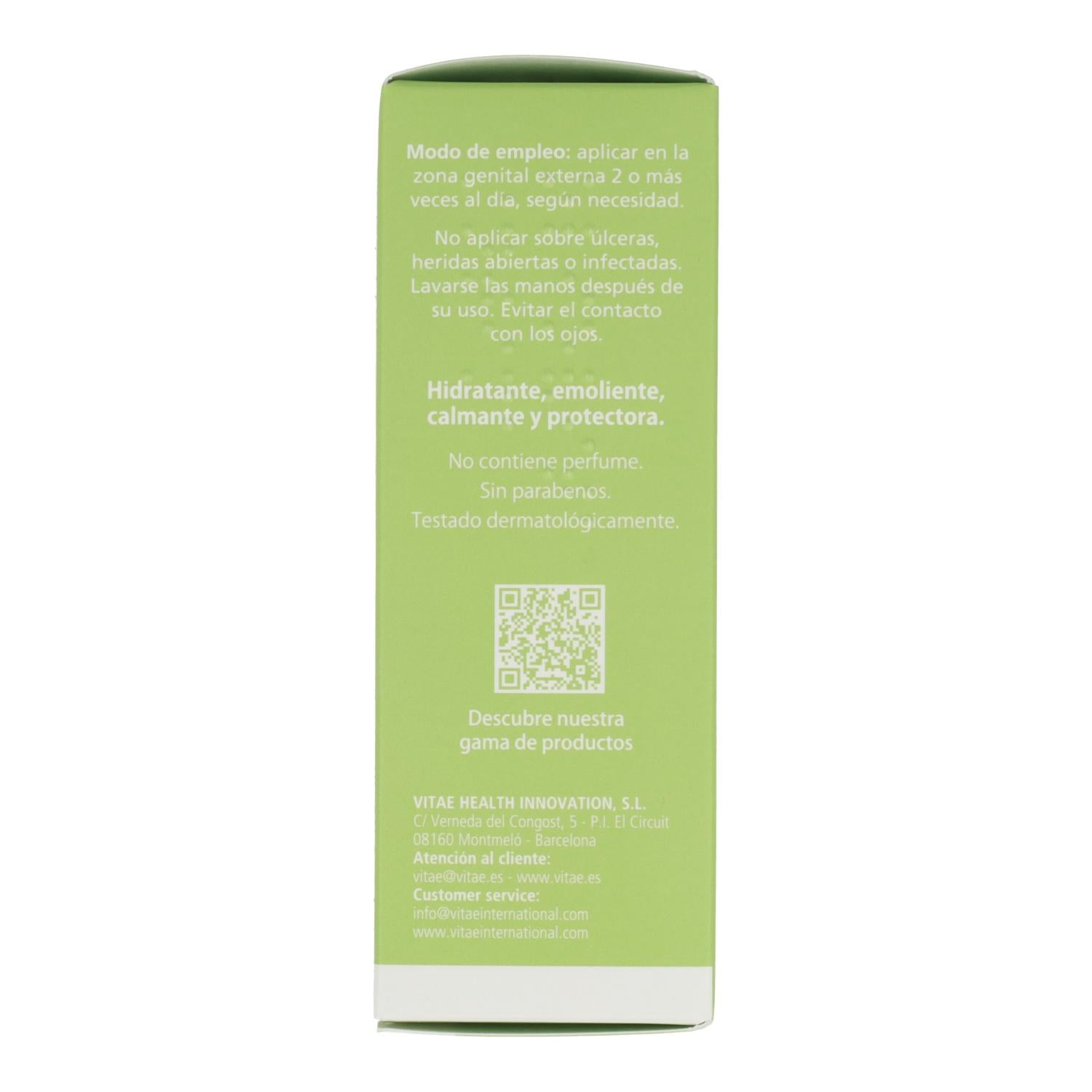 Crème hydratante vaginale externe à base d'extrait d'huile d'argousier ( Hippophae rhamnoides ), d'extrait de mauve ( Malva sylvestris ), d'huile d'argan ( Argania spinosa ), d'huile de sésame, d'acide hyaluronique et de peptides apaisants.