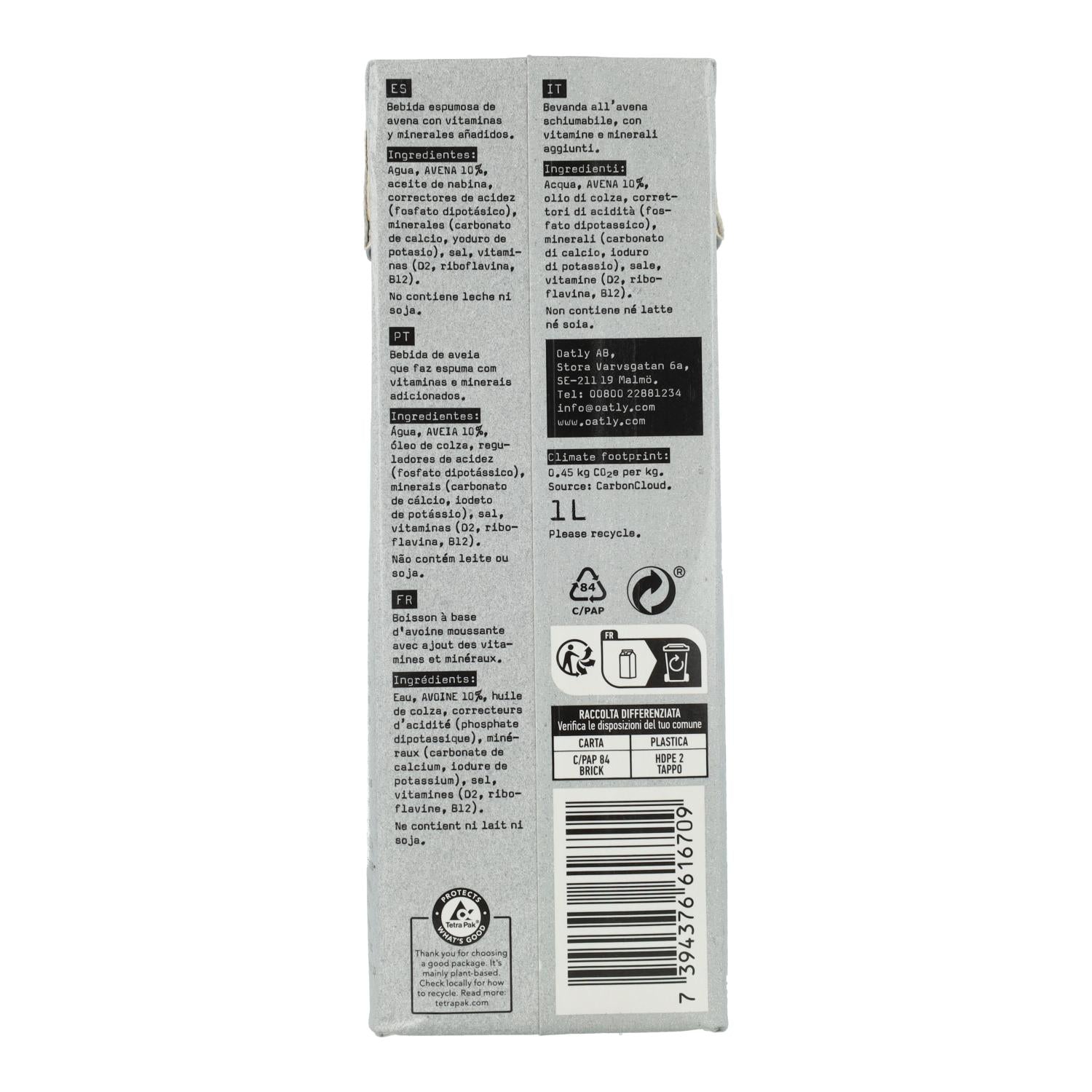 Toda la información sobre "Bebida Avena Barista Oatly 1 L"