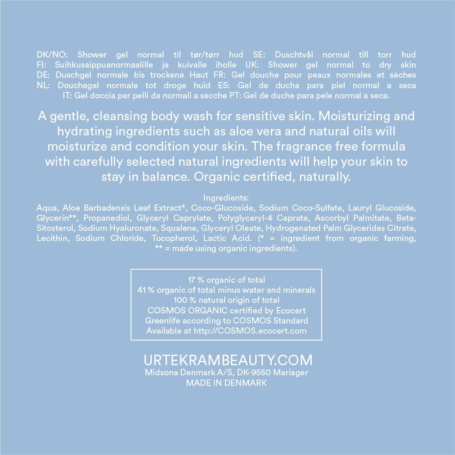 Toda la información sobre "Gel de baño sin fragancia Urtekram 500 ml"