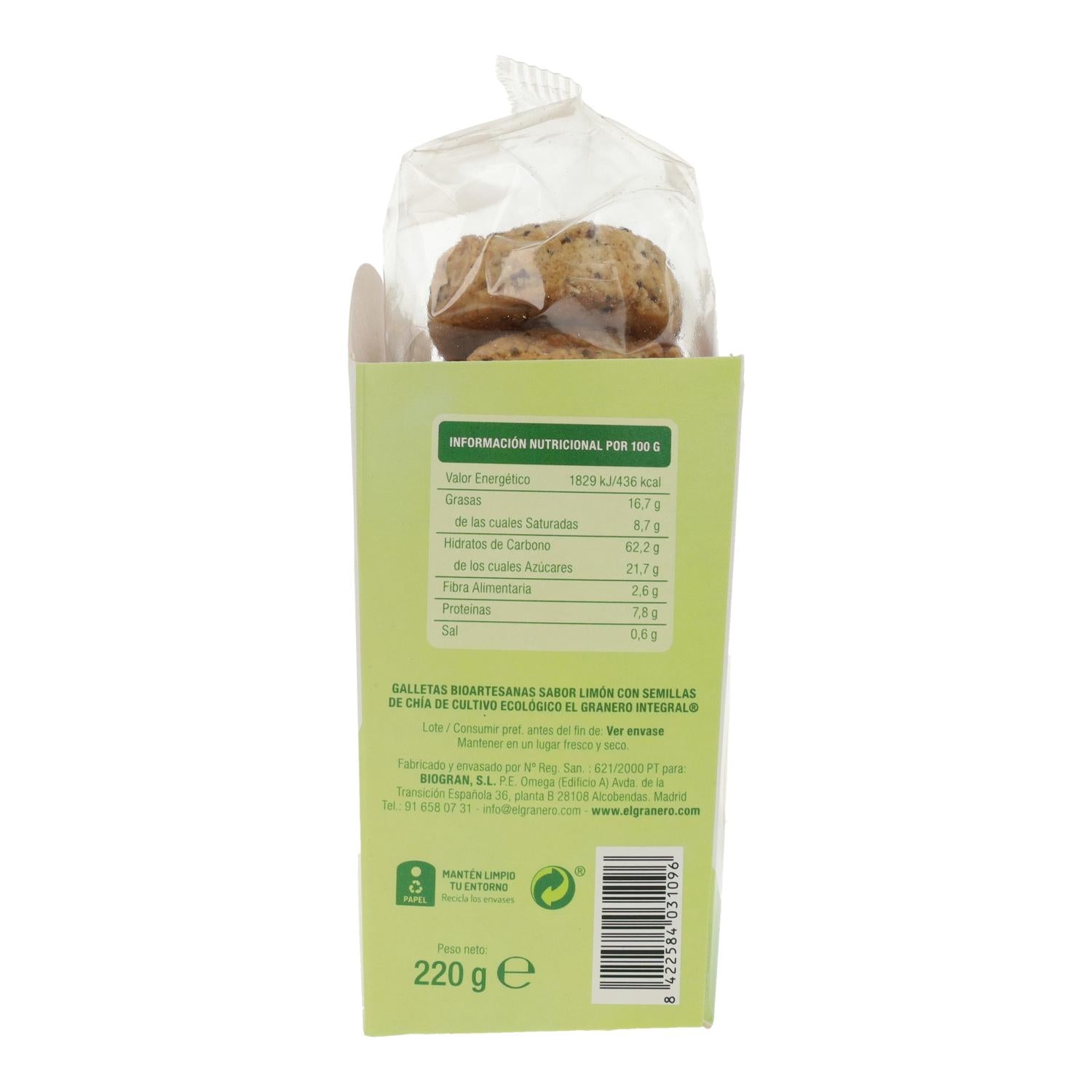 Tutte le informazioni su "Biscotti artigianali al limone con chia Bio El Granero, 220 g"