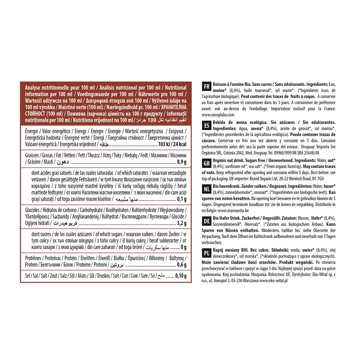 Alle informatie over "Biologische suikervrije plantaardige haverdrank ECOMIL 1 l"