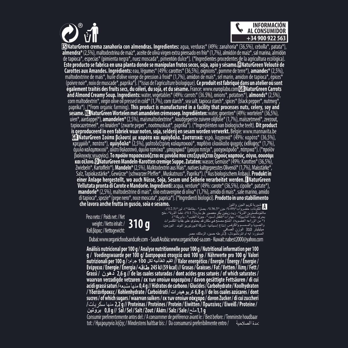Alle informatie over "Crème de carottes Naturgreen aux amandes, 310 g"