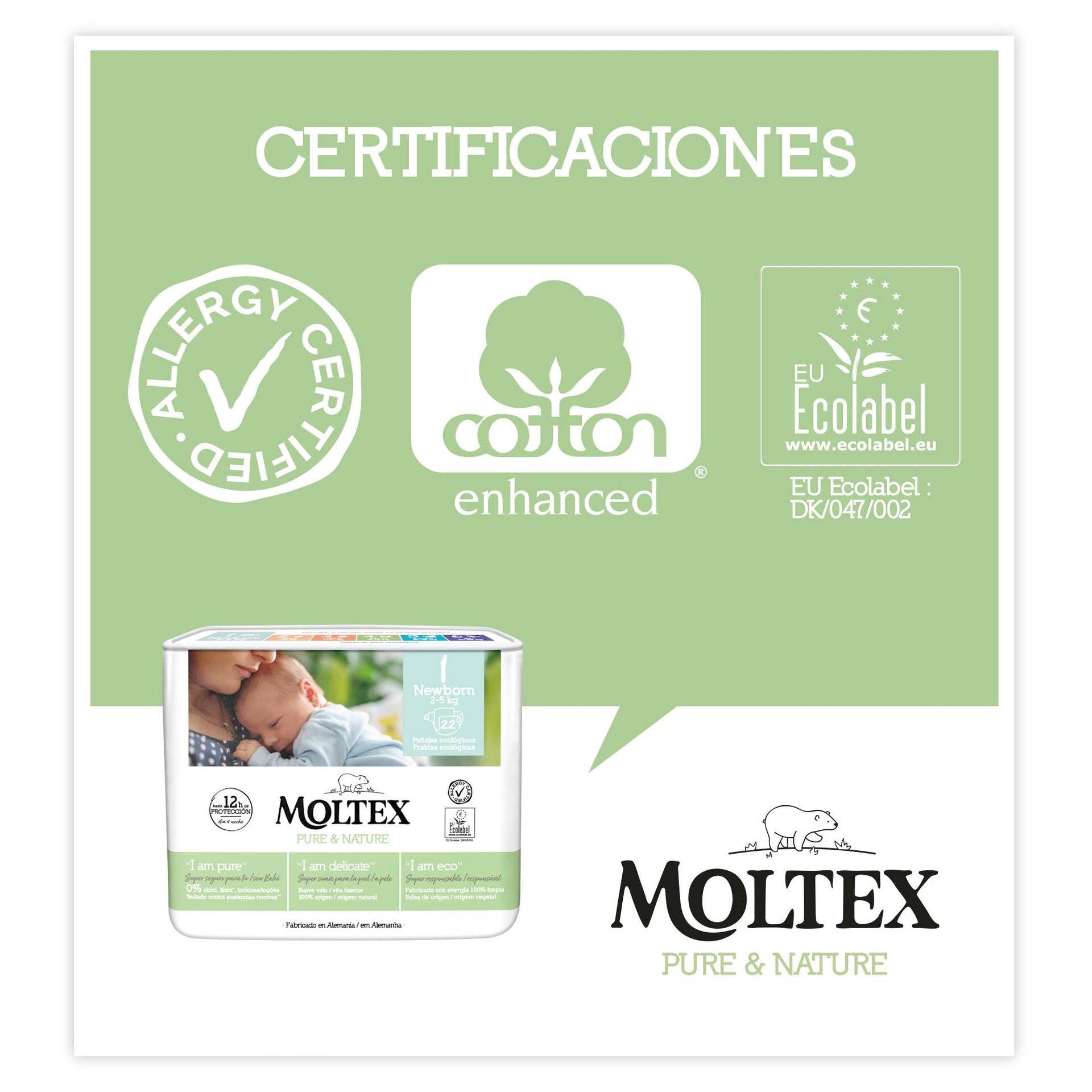 Alle informatie over "Luiers T1 (2-5 kg) Moltex Pure & Nature, 22 stuks"