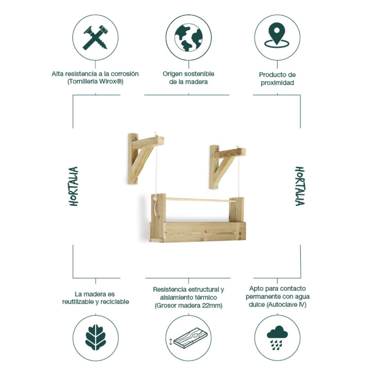 Jardinière suspendue en bois traité, idéale pour décorer les murs intérieurs et extérieurs de votre maison.