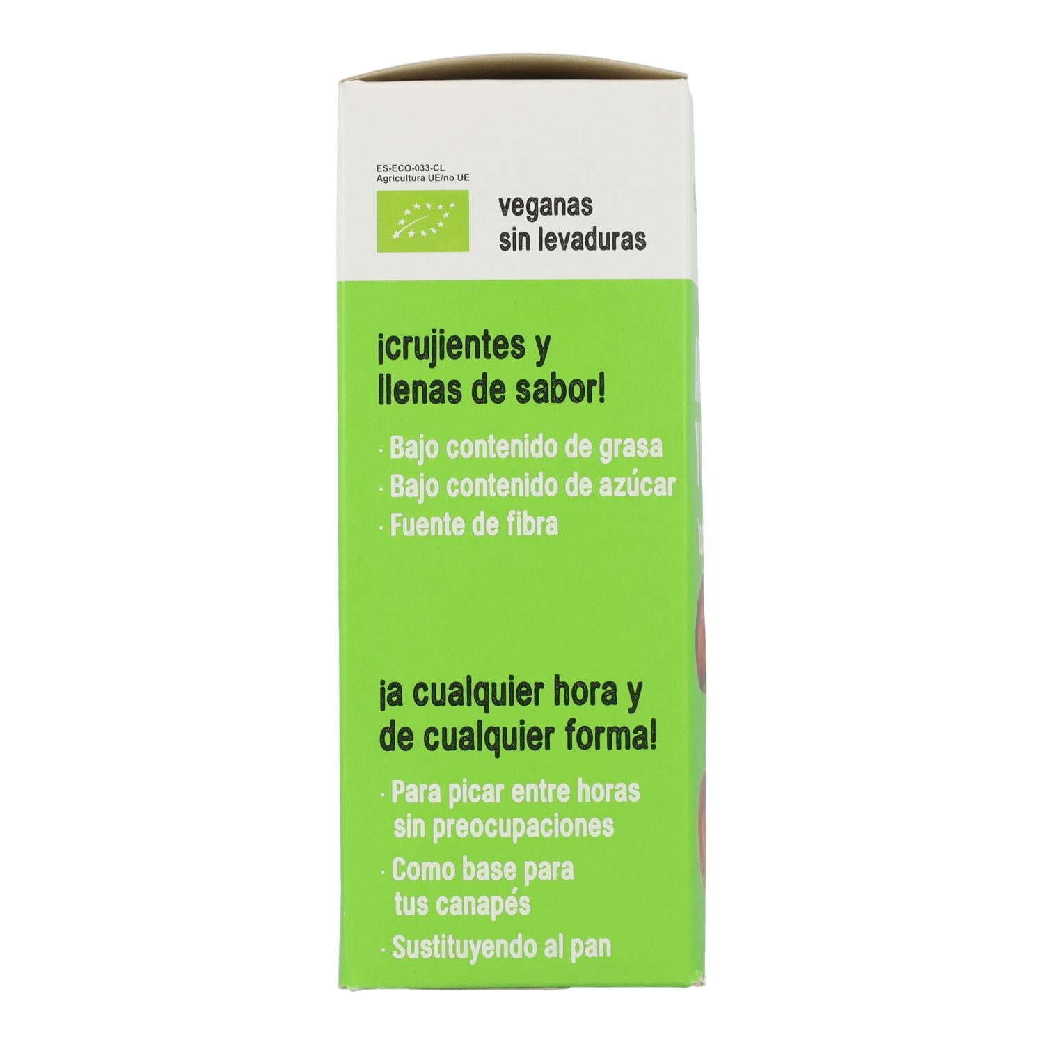 Les toasts légers au riz et aux châtaignes biologiques de Soria Natural sont croustillants et légers, grâce à un procédé d'extrusion qui les rend faciles à digérer. Ils sont élaborés à partir de farine de riz complet et de farine de châtaigne, toutes deux issues de l'agriculture biologique. Ces toasts sont parfaits à déguster à tout moment de la journée, en collation, en base pour des canapés ou en remplacement du pain lors des repas.