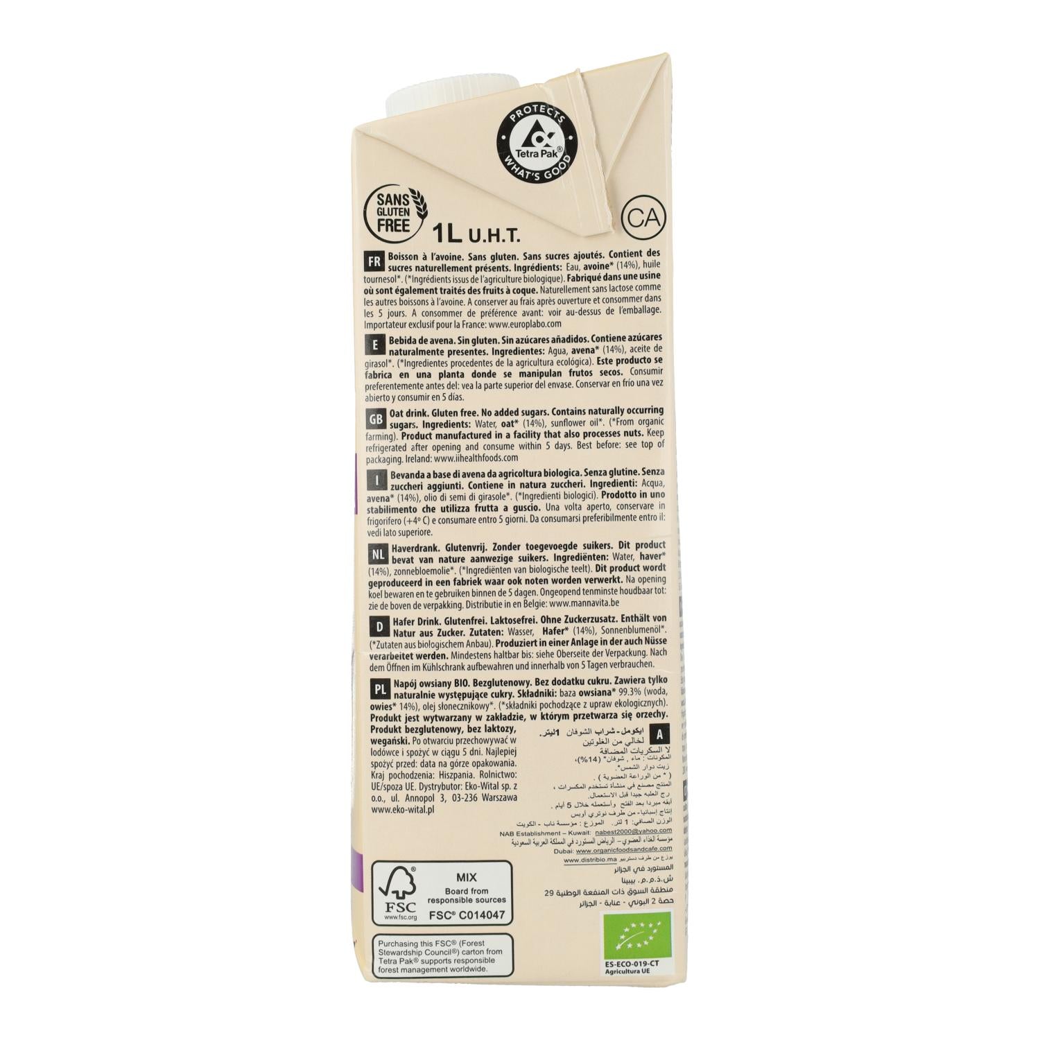 Toutes les informations sur "Boisson végétale à l'avoine bio sans gluten Ecomil 1 L"