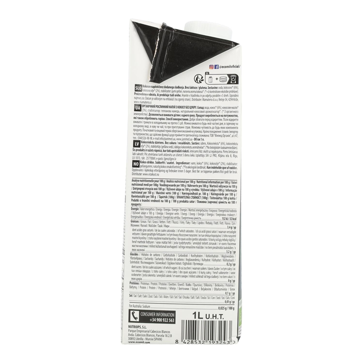 Toutes les informations sur "Boisson végétale à la noix de coco Nature KETO BIO EcoMil 1 L"