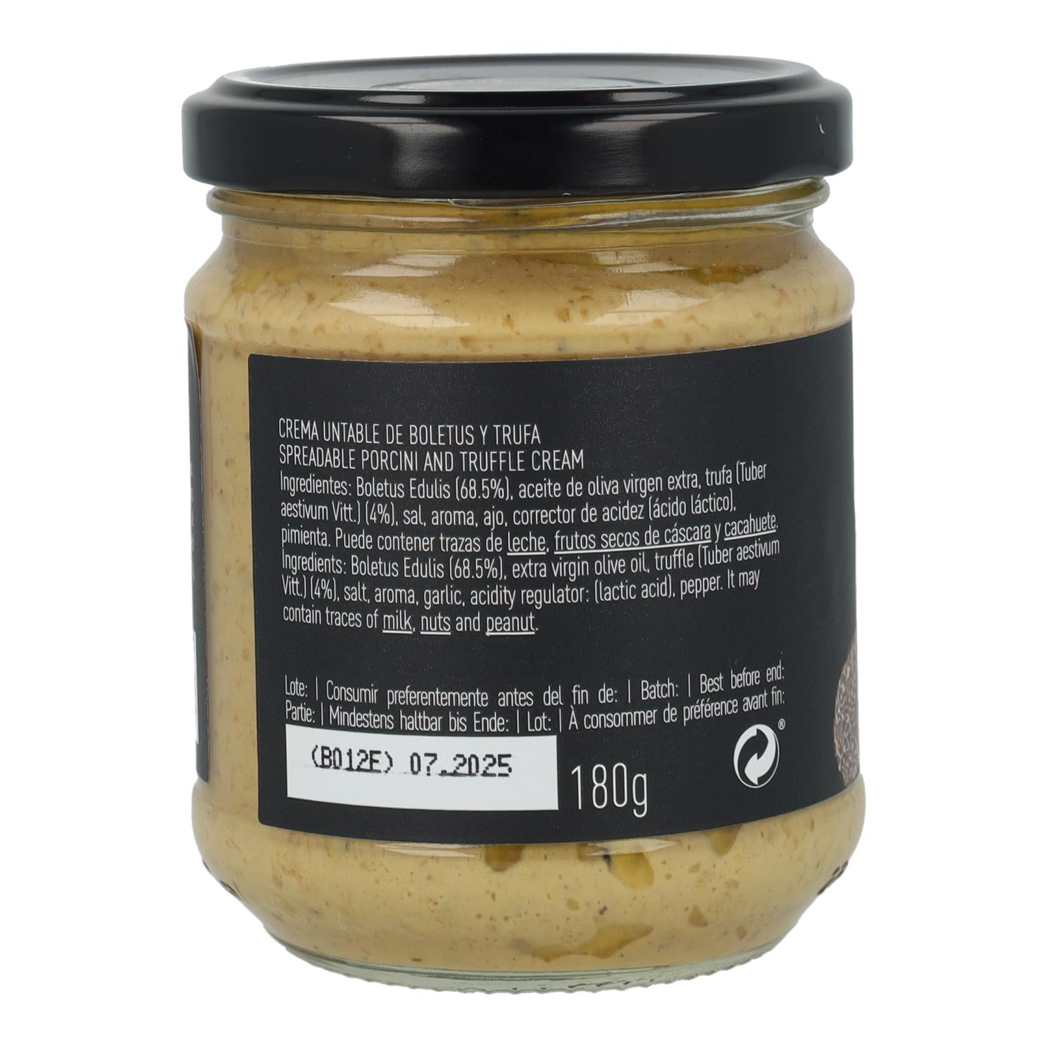 Boletus edulis (68,5%), huile d'olive extra vierge, truffe noire d'été (Tuber aestivum Vitt.) (4%), chapelure (farine de blé ( gluten ), eau, levure, sel), sel, ail, correcteur d'acidité (acide lactique), poivre.