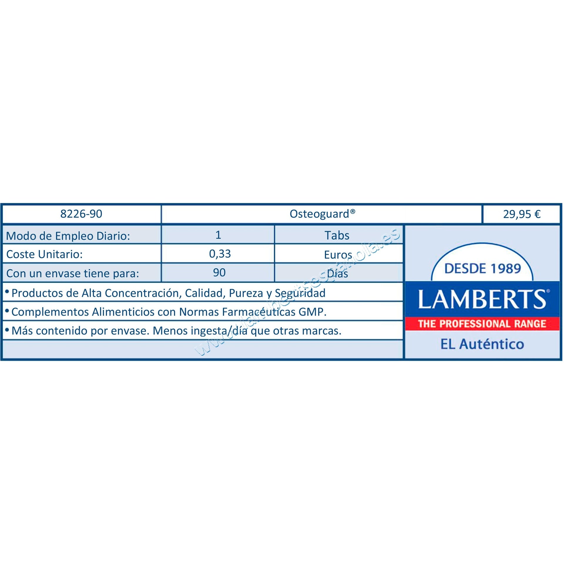 Toutes les informations sur "Osteoguard Calcium, Magnésium, Bore et Vitamines D et K Lamberts 90 comprimés"