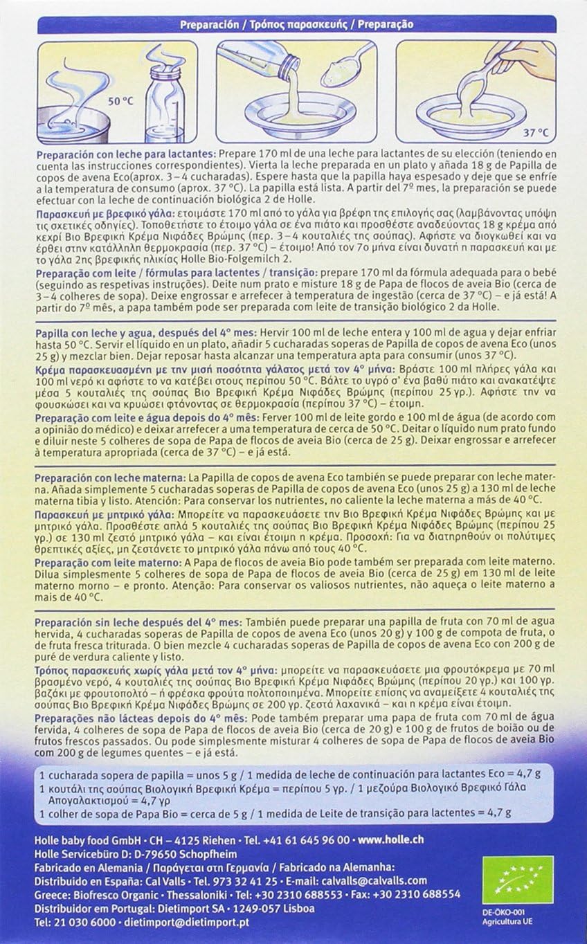 All information om "Ekologisk havregrynsgröt +4 månader Holle 250 g"