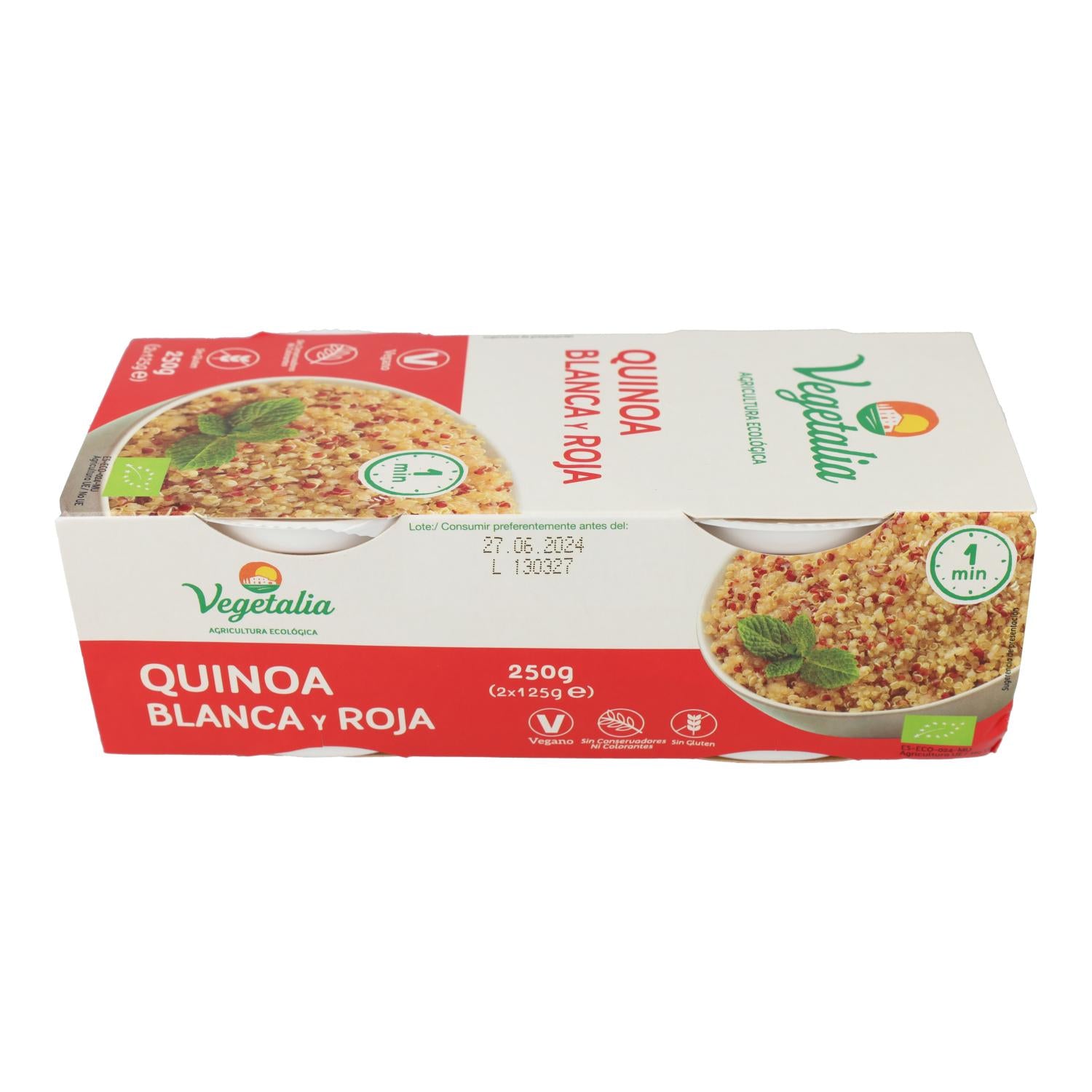 All information om "Tasses de quinoa blanc et rouge biologique de Vegetalia, 2 unités x 125 g"