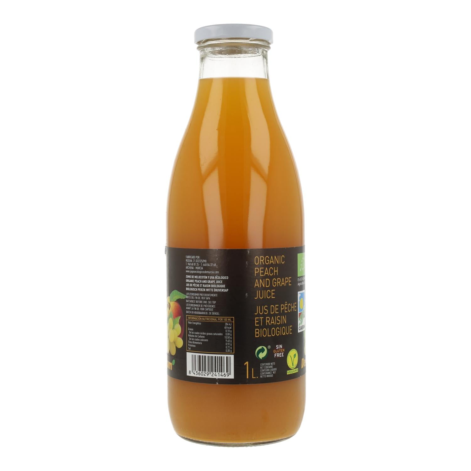 Jus de pêche et de raisin élaboré à partir de purée de pêche biologique et de concentré de raisin.